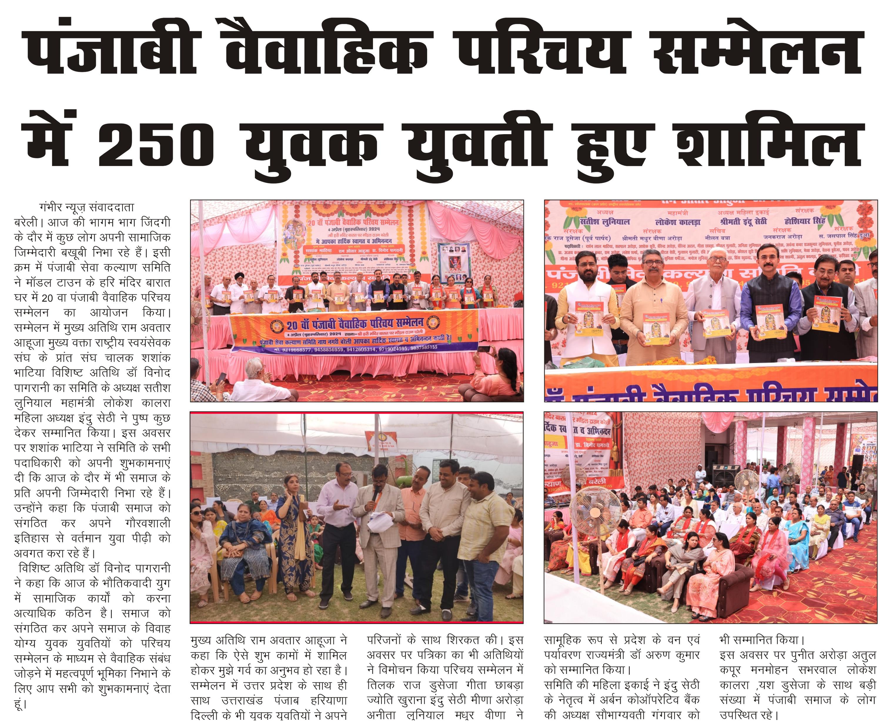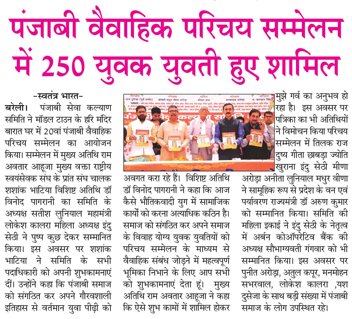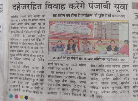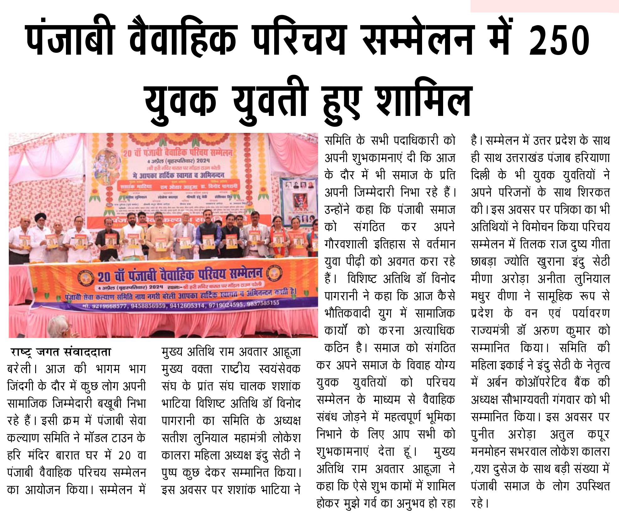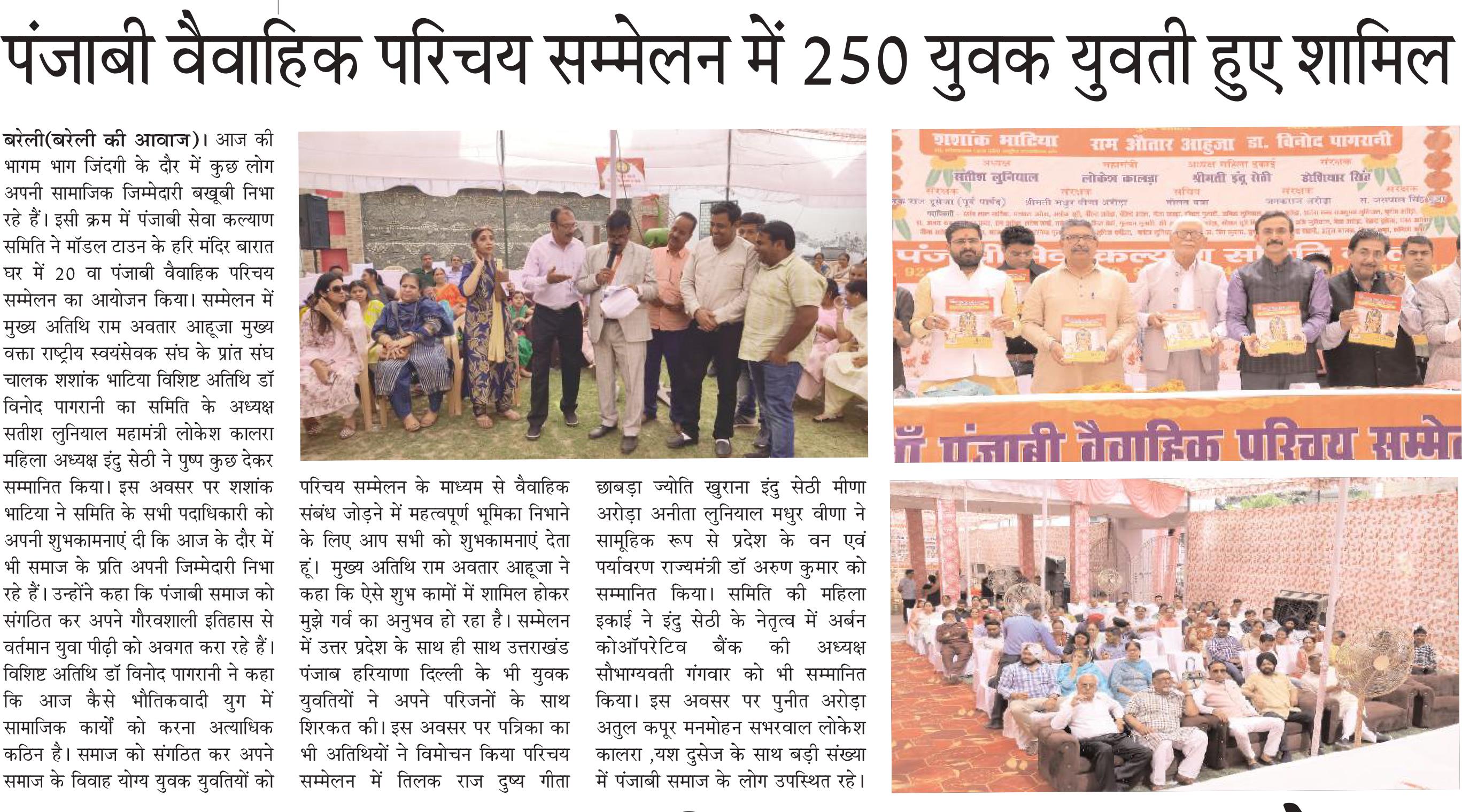 20वां पंजाबी वैवाहिक परिचय सम्मेलन 4 अप्रैल को महामंत्री लोकेश कालरा ने बताया कि लगभग 250 रजिस्ट्रेशन होने की संभावना है न्यूज़(आप अभी तक ) Read more